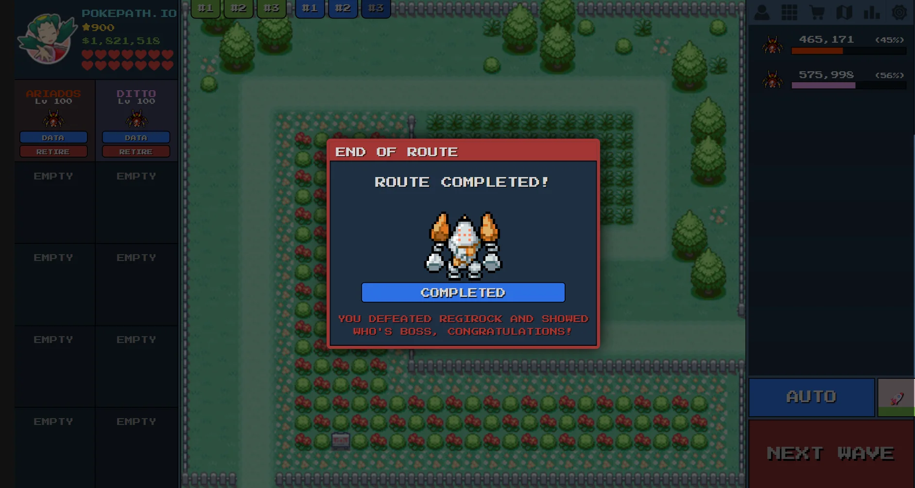 Due to REGIROCK's unique mechanics, fully automatic farming is not possible — you still need to manually control ARIADOS to defeat it. While it's not fully AFK, we've recommended the best team composition to clear Route 3-1.